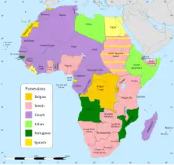 The Scramble for Africa[h] was the invasion, conquest, and colonisation of most of Africa by seven Western European powers driven by the Second Industrial Revolution during the late 19th century and early 20th century in the era of "New Imperialism". Belgium, France, Germany, Italy, Portugal, Spain and the United Kingdom were the contending powers.