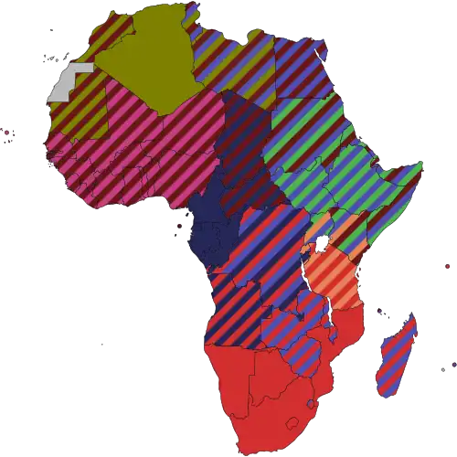 As of 2025, Africa contains 54 sovereign countries.[144] Since independence, African states have frequently been hampered by instability, corruption, violence, and authoritarianism. The vast majority of African states are republics that operate under some form of the presidential system of rule. However, few of them have been able to sustain democratic governments on a permanent basis—per the criteria laid out by Lührmann et al. (2018), only Botswana and Mauritius have been consistently democratic for the entirety of their post-colonial history. Most African countries have experienced several coups or periods of military dictatorship. Between 1990 and 2018, though, the continent as a whole has trended towards more democratic governance.[145]