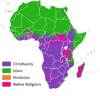 | ^ A: African people often combine the practice of their traditional beliefs with the practice of Abrahamic religions.[7][8] | |