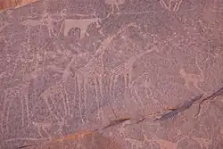 Egypt is rich in building and decorative stone, copper and lead ores, gold, and semiprecious stones. These natural resources allowed the ancient Egyptians to build monuments, sculpt statues, make tools, and fashion jewelry.[94] Embalmers used salts from the Wadi Natrun for mummification, which also provided the gypsum needed to make plaster.[95] Ore-bearing rock formations were found in distant, inhospitable wadis in the Eastern Desert and the Sinai, requiring large, state-controlled expeditions to obtain natural resources found there. There were extensive gold mines in Nubia, and one of the first maps known is of a gold mine in this region. The Wadi Hammamat was a notable source of granite, greywacke, and gold. Flint was the first mineral collected and used to make tools, and flint handaxes are the earliest pieces of evidence of habitation in the Nile valley. Nodules of the mineral were carefully flaked to make blades and arrowheads of moderate hardness and durability even after copper was adopted for this purpose.[96] Ancient Egyptians were among the first to use minerals such as sulfur as cosmetic substances.[97]