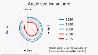 - ^ "PIOMAS Data / PIOMAS Ice Volume Data, 1979-present". Polar Science Center, University of Washington. April 2025. Archived from the original on 21 April 2025.