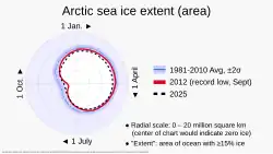 - ^ "Charctic Interactive Sea Ice Graph / A Sea Ice Today Tool / Arctic Sea Ice Extent". nsidc.org. National Snow and Ice Data Center (NSIDC), a part of CIRES at the University of Colorado Boulder. January 2026. Archived from the original on 20 January 2026. (Hover mouse over data traces to view individual data values.)