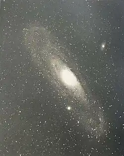 Astronomy flourished in the medieval Islamic world. Astronomical observatories were established there by the early 9th century.[34][35][36] In 964, the Andromeda Galaxy, the largest galaxy in the Local Group, was described by the Persian Muslim astronomer Abd al-Rahman al-Sufi in his Book of Fixed Stars.[37] The SN 1006 supernova, the brightest apparent magnitude stellar event in the last 1000 years, was observed by the Egyptian Arabic astronomer Ali ibn Ridwan and Chinese astronomers in 1006.[38] Iranian scholar Al-Biruni observed that, contrary to Ptolemy, the Sun's apogee (highest point in the heavens) was mobile, not fixed.[39][40] Arabic astronomers introduced many Arabic names now used for individual stars.[41]