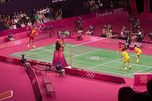 ![]() Two Chinese pairs compete in the mixed doubles gold medal match of the 2012 Olympics | |