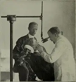 Historically, dental extractions have been used to treat a variety of illnesses. During the Middle Ages and throughout the 19th century, dentistry was not a profession in itself, and often dental procedures were performed by barbers or general physicians. Barbers usually limited their practice to extracting teeth which alleviated pain and associated chronic tooth infection. Instruments used for dental extractions date back several centuries. In the 14th century, Guy de Chauliac most probably invented the dental pelican[56] (resembling a pelican's beak) which was used to perform dental extractions up until the late 18th century. The pelican was replaced by the dental key[57] which, in turn, was replaced by modern forceps in the 19th century.[58]