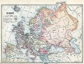 The Age of Enlightenment was a powerful intellectual movement during the 18th century promoting scientific and reason-based thoughts.[161][162][163] Discontent with the aristocracy and clergy's monopoly on political power in France resulted in the French Revolution, and the establishment of the First Republic as a result of which the monarchy and many of the nobility perished during the initial reign of terror.[164] Napoleon Bonaparte rose to power in the aftermath of the French Revolution, and established the First French Empire that, during the Napoleonic Wars, grew to encompass large parts of Europe before collapsing in 1815 with the Battle of Waterloo.[165][166] Napoleonic rule resulted in the further dissemination of the ideals of the French Revolution, including that of the nation state, as well as the widespread adoption of the French models of administration, law and education.[167][168][169] The Congress of Vienna, convened after Napoleon's downfall, established a new balance of power in Europe centred on the five "great powers": the UK, France, Prussia, Austria, and Russia.[170] This balance would remain in place until the Revolutions of 1848, during which liberal uprisings affected all of Europe except for Russia and the UK. These revolutions were eventually put down by conservative elements and few reforms resulted.[171] The year 1859 saw the unification of Romania, as a nation state, from smaller principalities. In 1867, the Austro-Hungarian empire was formed; 1871 saw the unifications of both Italy and Germany as nation-states from smaller principalities.[172]