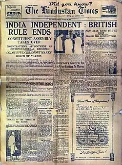 - ^ James L. Raj; Making and unmaking of British India. Abacus. 1997. p571, p598 and; Unpublished, Public Relations Office, London. War Office. 208/819A 25C
