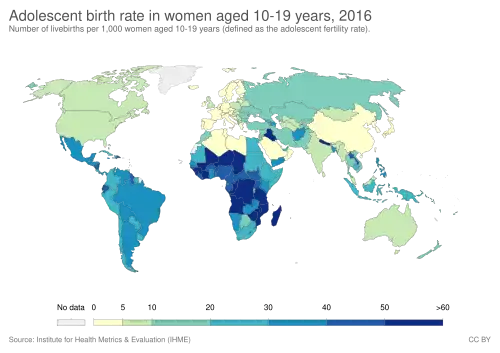 - ^ "Adolescent birth rate in women aged 10–19 years". Our World in Data. Retrieved February 15, 2020.