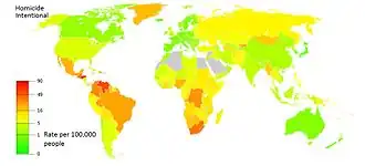 - ^ "Map: Here are countries with the world's highest murder rates". UN Office on Drugs and Crime's International Homicide Statistics database. June 27, 2016. Archived from the original on February 1, 2017. Retrieved February 1, 2017.