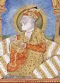 Jahangir (born Salim,[57] reigned 1605–1627) was born to Akbar and his wife Mariam-uz-Zamani, an Indian princess.[58] Salim was named after the Indian Sufi saint, Salim Chishti.[59][60] He "was addicted to opium, neglected the affairs of the state, and came under the influence of rival court cliques".[43] Jahangir distinguished himself from Akbar by making substantial efforts to gain the support of the Islamic religious establishment. One way he did this was by bestowing many more madad-i-ma'ash (tax-free personal land revenue grants given to religiously learned or spiritually worthy individuals) than Akbar had.[61] In contrast to Akbar, Jahangir came into conflict with non-Muslim religious leaders, notably the Sikh guru Arjan, whose execution was the first of many conflicts between the Mughal Empire and the Sikh community.[62][63][64]