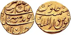 The Mughals adopted and standardised the rupee (rupiya, or silver) and dam (copper) currencies introduced by Sur Emperor Sher Shah Suri during his brief rule.[113] The Mughals minted coins with high purity, never dropping below 96%, and without debasement until the 1720s.[114]