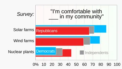 310. ^ Chiu, Allyson; Guskin, Emily; Clement, Scott (3 October 2023). "Americans don't hate living near solar and wind farms as much as you might think". The Washington Post. Archived from the original on 3 October 2023.