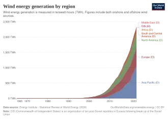 Wind energy generation by region over time[97]