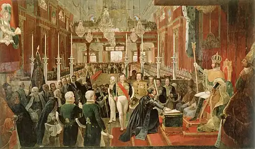 Later in 1836, while Brazil was experiencing the chaos of the regency, Rio Grande do Sul proclaimed its independence motivated by a tax crisis. With the anticipation of the coronation of Pedro II to the throne of Brazil, the country could stabilize and fight the separatists, which the province of Santa Catarina had joined in 1839. The Conflict came to an end by a process of compromise by which both Riograndense Republic and Juliana Republic were reincorporated as provinces in 1845.[30][31]