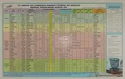 Schedule of train departure times in Indonesia stations