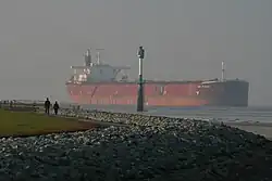 Although it is slow compared to other transport, modern sea transport is a highly efficient method of transporting large quantities of goods. Commercial vessels, nearly 35,000 in number, carried 7.4 billion tons of cargo in 2007.[63] Transport by water is significantly less costly than air transport for transcontinental shipping;[64] short sea shipping and ferries remain viable in coastal areas.[65][66]