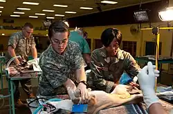 US and South African army veterinary technicians prepare a dog for spaying.